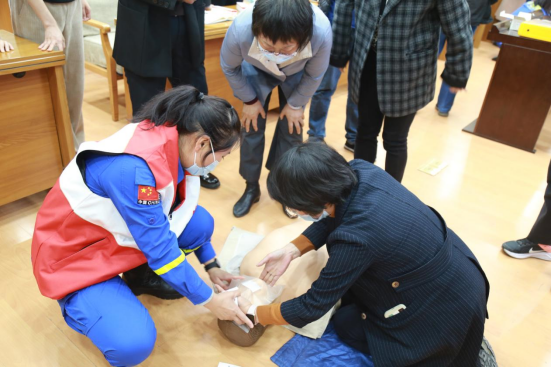本次讲座采用理论讲解和技能操作相结合的方式。在理论讲解环节,省红十字蓝天救援队协调中心刘松杰主任结合自身多年教学经验,以图文并茂的方式详细讲解了红十字精神、心肺复苏及自动除颤仪的使用、气道异物梗阻、常见急症的处置。在技能操作环节,专家手把手指导干部职工开展心肺复苏术、气道异物梗阻等常见急救技能操作,提高大家在面临突发情况时的自救互救能力。