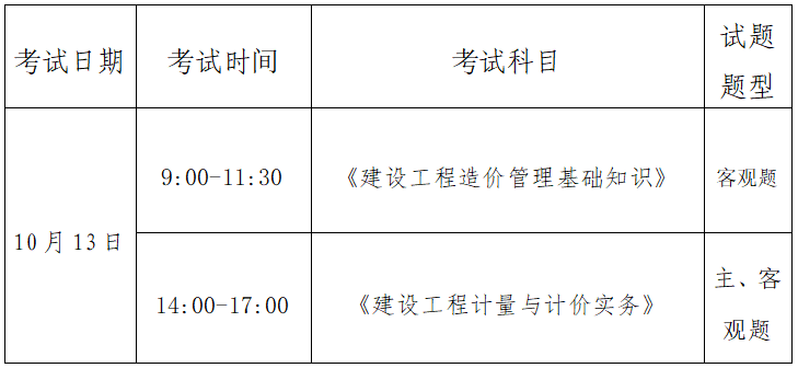 注:考试设基础科目《建设工程造价管理基础知识》、专业科目《建设工程计量与计价实务》,其中《建设工程计量与计价实务》分为土木建筑工程、交通运输工程、水利工程和安装工程4个专业类别,报考人员可选择其中一个专业类别报考。