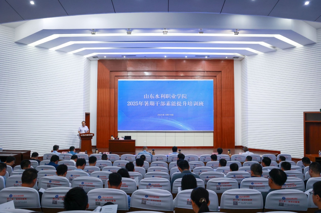 精准施训强本领,厚德砺能启新程。8月18日至21日,山东水利职业学院举办2025年暑期干部素能提升培训班。本次培训采取专题辅导、分组研讨、中期汇报、结业交流等方式,旨在深入学习贯彻习近平新时代中国特色社会主义思想,推动深入贯彻中央八项规定精神学习教育走深走实,持续提升干部队伍政治素养、理论水平和履职能力,着力建设适应职业教育改革发展形势要求的高素质专业化干部队伍。