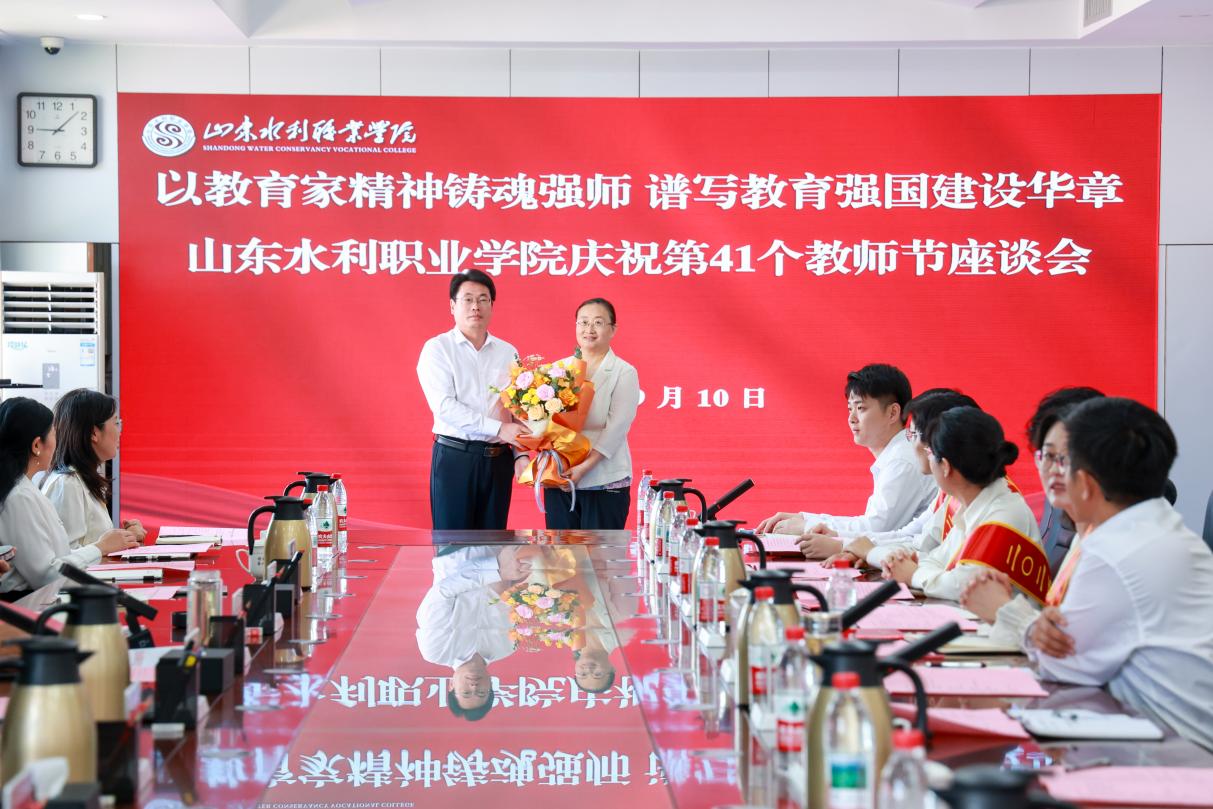 9月10日上午,山东水利职业学院召开庆祝第41个教师节座谈会,会议的主要内容是深入学习贯彻习近平总书记给全国特岗教师代表的重要回信精神,表彰过去一年在各个岗位上涌现出的先进个人,系统回顾学院一年来各项事业推进成效,全面把握学院发展面临的机遇和挑战,科学谋划学院“十五五”发展目标,广泛凝聚学院内涵式高质量发展的强大合力。党委书记王维出席会议并讲话,党委委员刘秋生、杜守建、张原生参加会议,党委委员、副院长林艳斌主持会议。